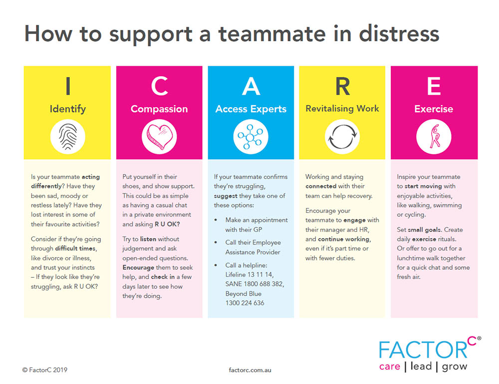 The WeCARE learning campaign provides you and your people the know how and confidence to support a teammate in distress and stop little problems getting bigger.